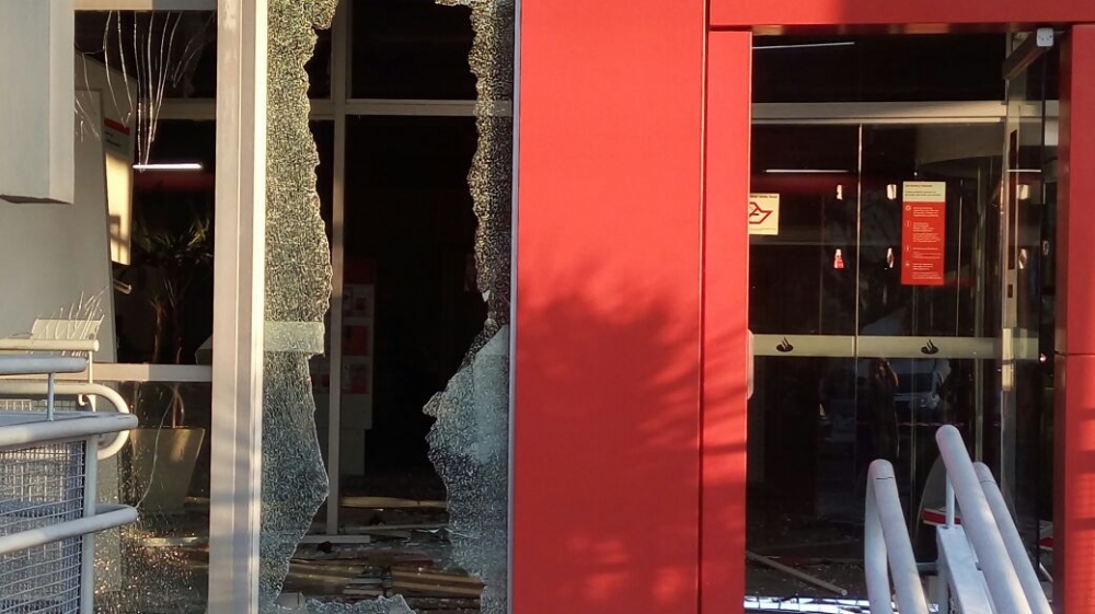 As portas de vidro das agências estouraram e alguns caixas eletrônicos ficaram destruídos.