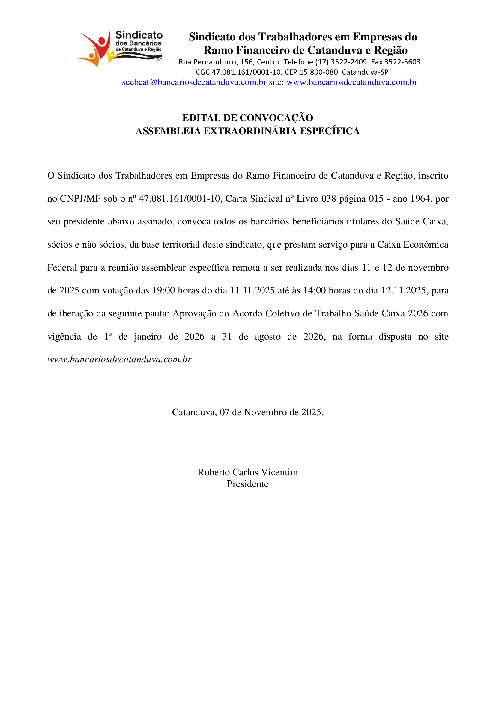 - EDITAL ASSEMBLEIA GERAL EXTRAORDINÁRIA ESPECÍFICA - ACT Saúde Caixa