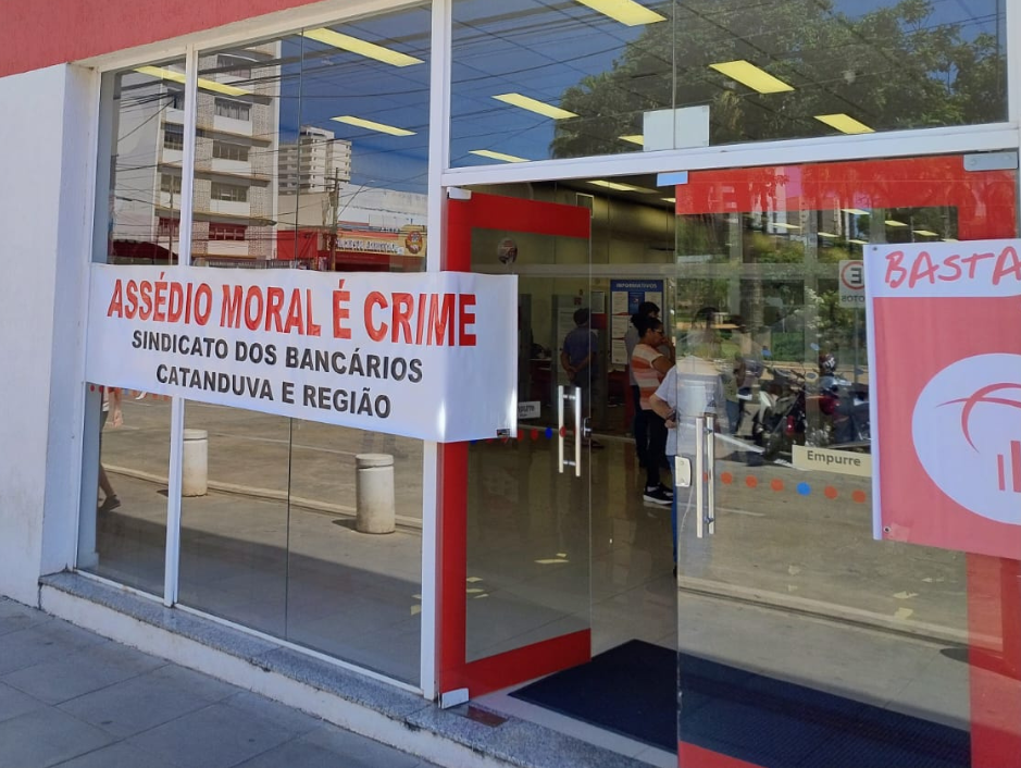 O Sindicato dos Bancários de Catanduva e Região esteve nas ruas e agências do Bradesco nesta quarta-feira (19) para reforçar as mobilizações do Dia Nacional de Luta no banco, levando informação, resistência e diálogo direto com trabalhadores e clientes. Com palavras de ordem, cartazes afixados na faixada da unidade central do banco em Catanduva e a distribuição de um Infopress especial, diretores da entidade denunciaram a lógica perversa que orienta a atual política de gestão do banco: a supremacia do lucro em detrimento das pessoas.