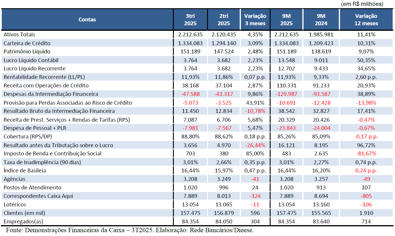 - Lucro da Caixa cresce 50,3% no 3º trimestre de 2025