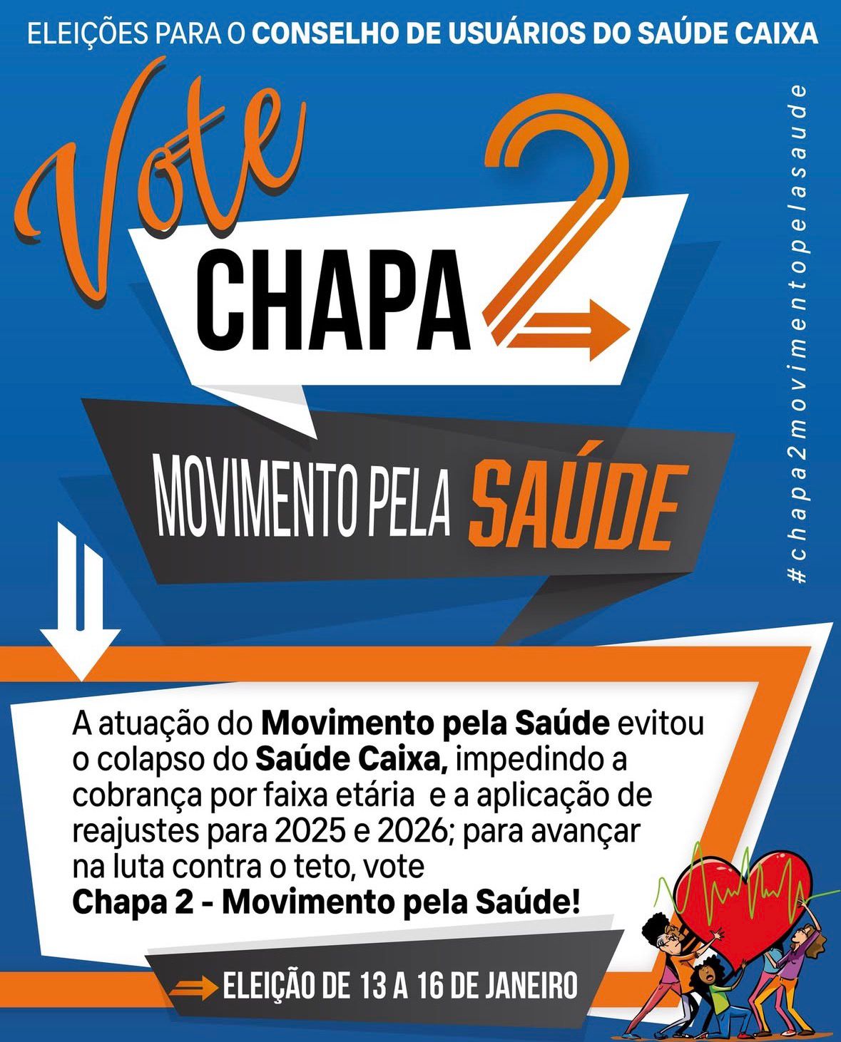- Saúde Caixa: Sindicato apoia CHAPA 2 - MOVIMENTO PELA SAÚDE na eleição do Conselho de Usuários