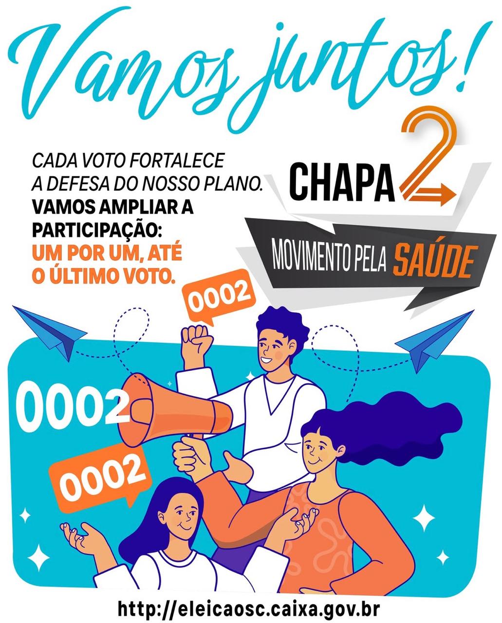 Entre os principais compromissos da Chapa 2 estão a defesa do modelo de custeio 70%/30%, a luta pelo fim do teto estatutário de 6,5% da folha de pagamento, que reduz a participação da Caixa no custeio do plano, e a preservação dos princípios de solidariedade, mutualismo e pacto intergeracional, com posicionamento contrário à cobrança por faixa etária.