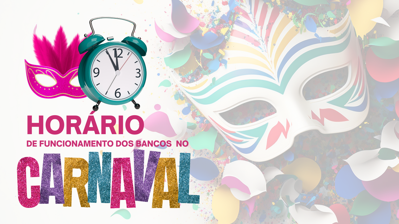 Devido à folia do Momo, os bancos estarão fechados na segunda-feira (16) e na terça-feira (17) de carnaval e retomam atividades e atendimento presencial nas agências na Quarta-feira de Cinzas (18) a partir das 12 horas, no horário de Brasília. Neste dia, o encerramento das atividades ocorrerá no horário normal de fechamento das agências.