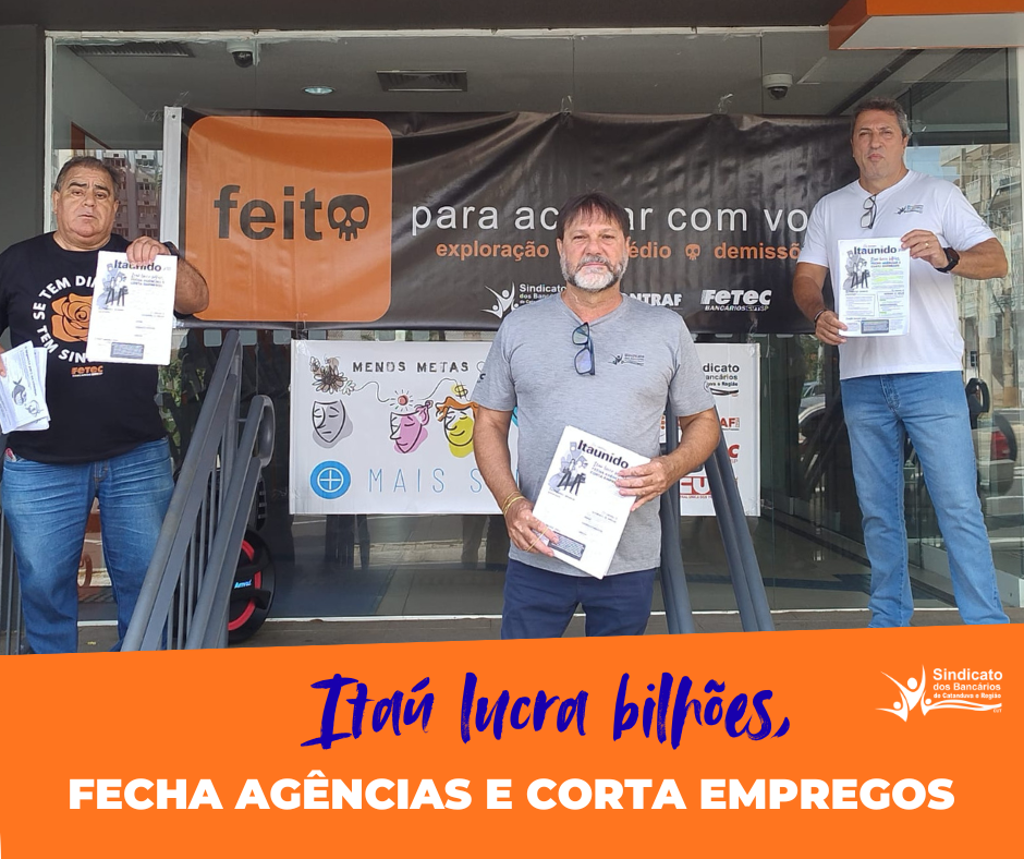 - Itaú lucra bilhões, corta empregos e precariza atendimento: Sindicato vai às ruas e cobra responsabilidade social