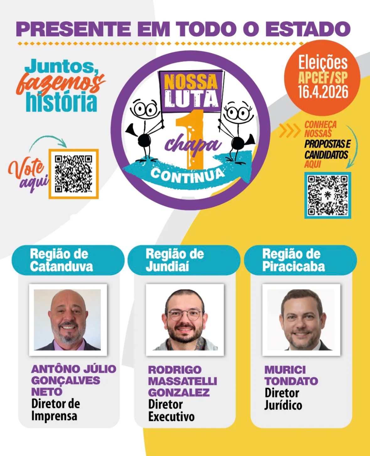 A chapa conta também com o diretor do Sindicato, Antônio Júlio Gonçalves Neto (o Tony), para o cargo de diretor de imprensa da entidade.