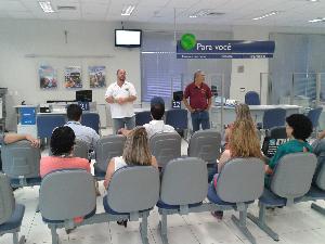 Em mais um dia de reuniões nas agências da CEF, os diretores do sindicato Tony Gonçalves e Euclides de Almeida Prado estiveram nesta manhã com os empregados de José Bonifácio e Urupês, onde puderam debater sobre a eleição do Conselho de Administração.