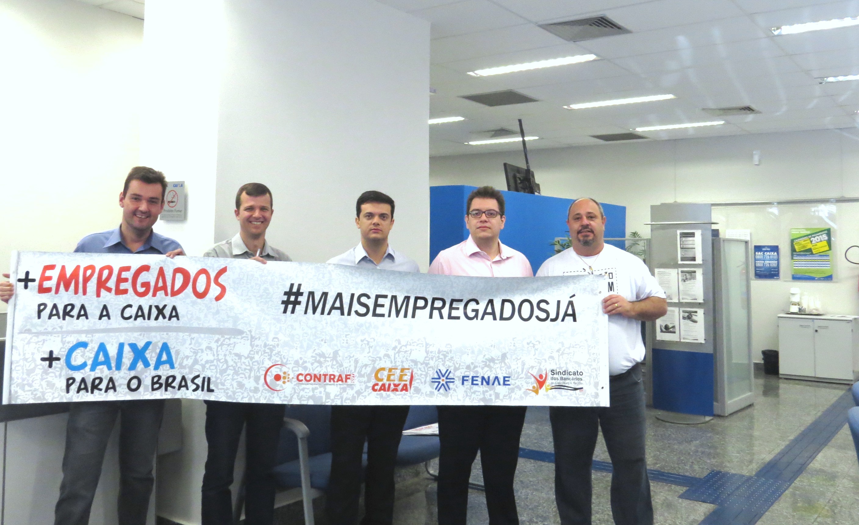 As ações de mobilização promovidas pelo Sindicato dos Bancários de Catanduva e Região em defesa de mais contratações na Caixa Econômica Federal seguem a todo vapor. Nas últimas semanas, empregados das agências de Pindorama, Santa Adélia, Monte Alto, Potirendaba e Catanduva (14 de Abril) reforçaram o coro e exibiram fotos nas redes sociais com o mote “Mais Empregados para a Caixa, Mais Caixa para o Brasil”.