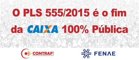 Por orientação das entidades representativas dos trabalhadores da Caixa, como Contraf, Fenae e Comissão Executiva dos Empregados (CEE) será realizado na próxima segunda-feira (14) o Dia Nacional de Luta em Defesa da Caixa 100% Pública e contra o PLS 555/2015. O objetivo é mobilizar os trabalhadores do banco na tentativa de barrar o projeto, que trata do Estatuto das Estatais e ameaça empresas públicas federais, estaduais e municipais.