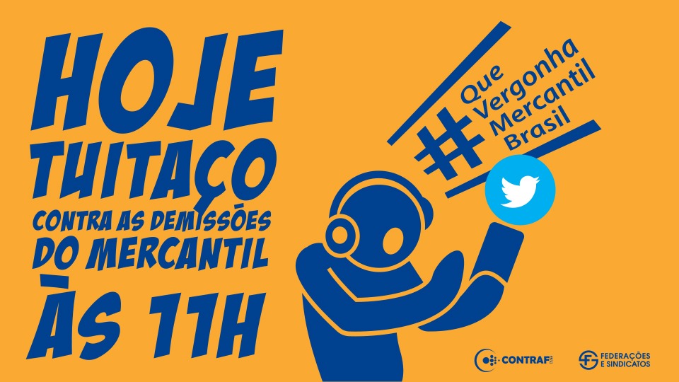 Haverá, ainda, um tuitaço às 11h para denunciar o banco. A hashtag é #QueVergonhaMercantilBrasil . Ajude a divulgar o protesto virtual. Passe a hashtag para seus amigos e familiares.