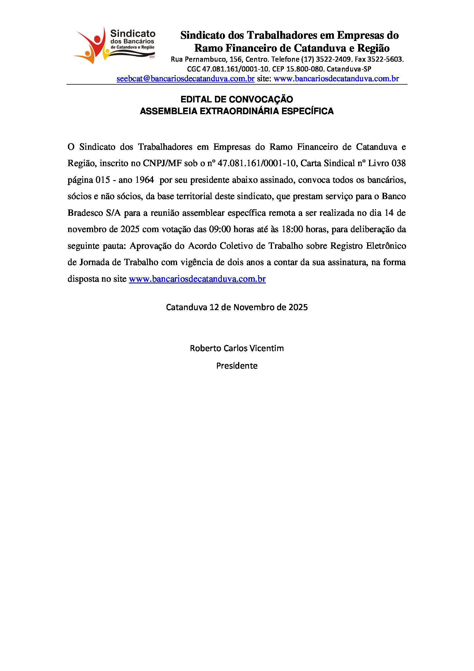 EDITAL ASSEMBLEIA EXTRAORDINÁRIA ESPECÍFICA DO BRADESCO - Ponto Eletrônico