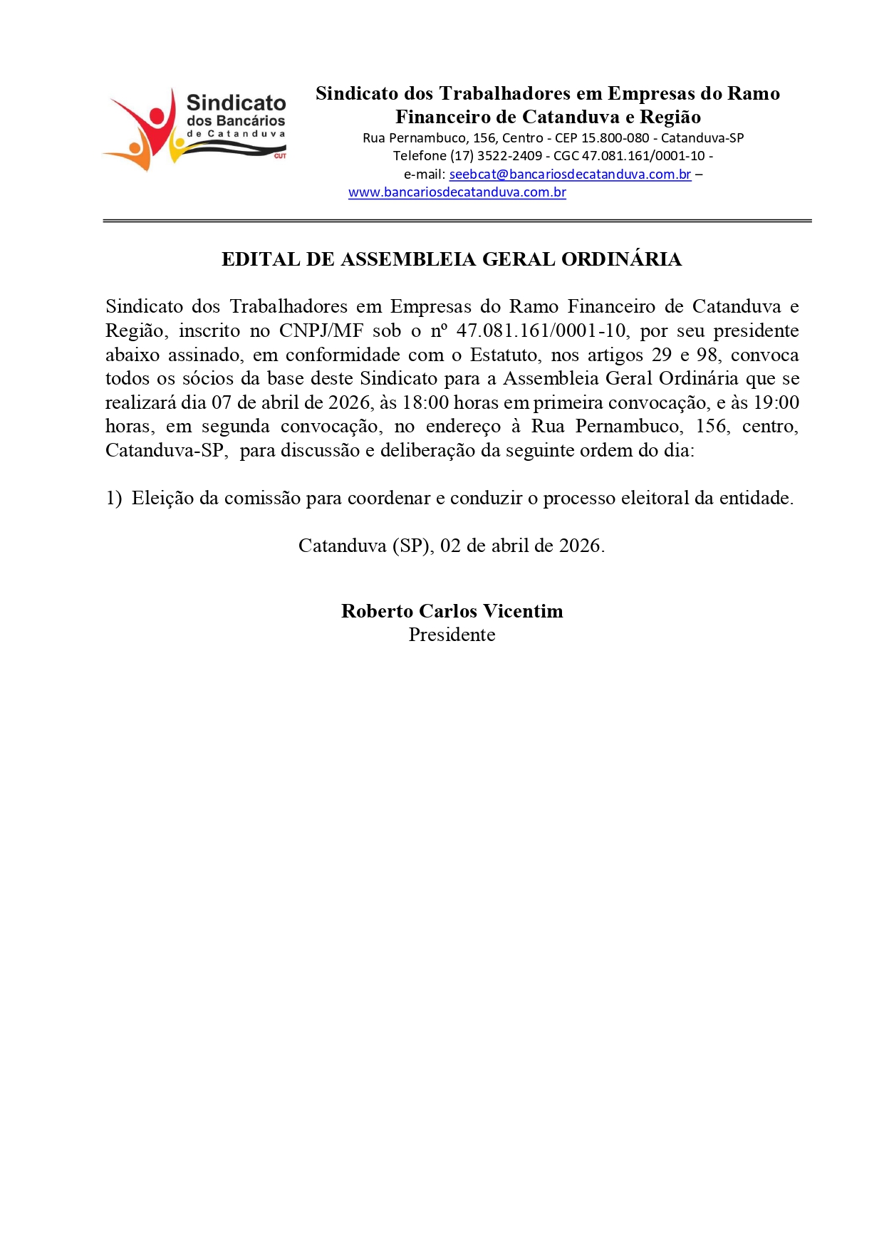- Edital de Assembleia Geral Ordinária para eleição de Comissão Eleitoral