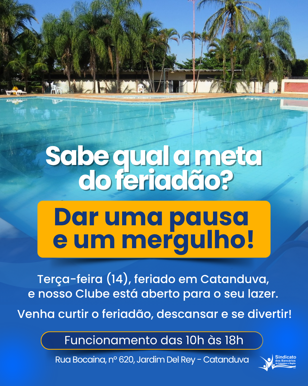 - Alô, associado! Venha curtir o feriado municipal em Catanduva no Clube dos Bancários